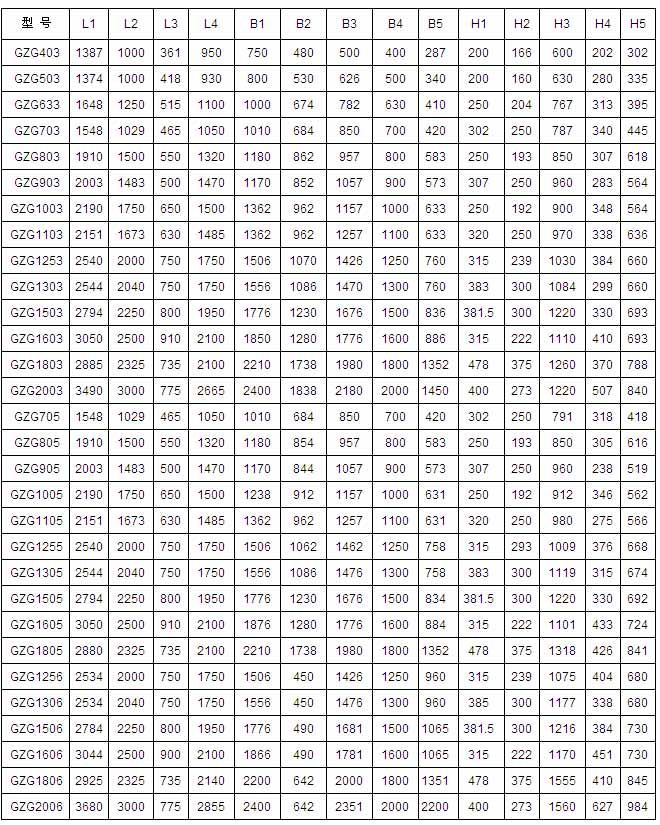 | GZG1606 | 1600×2500×315 | 830 | 1190 | 500 | 5 | ZG636 | 2×5.55 | 2×2.2 | 1720 | |||
